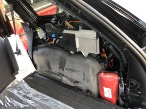 なんで、後方側面に隠れている純正BOSEアンプまでの配線を加工します。