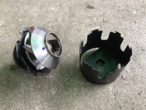 ウォーターポンプの形状を見ると、脱着には反対回しで交換だった。