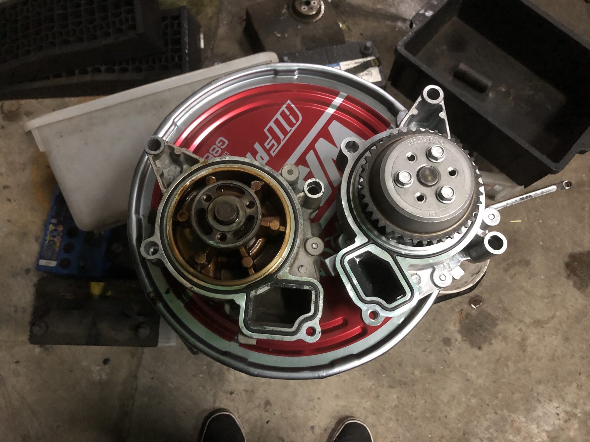 取り外し後ですが、ウォーターポンプは裏側にあります。
