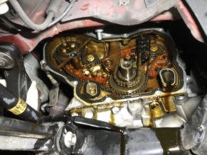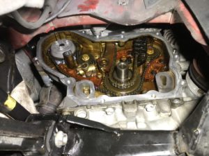 ディーラーであれば、特殊工具があるのでしょうが、無い場合は、チェーンカバーを外しての作業です。