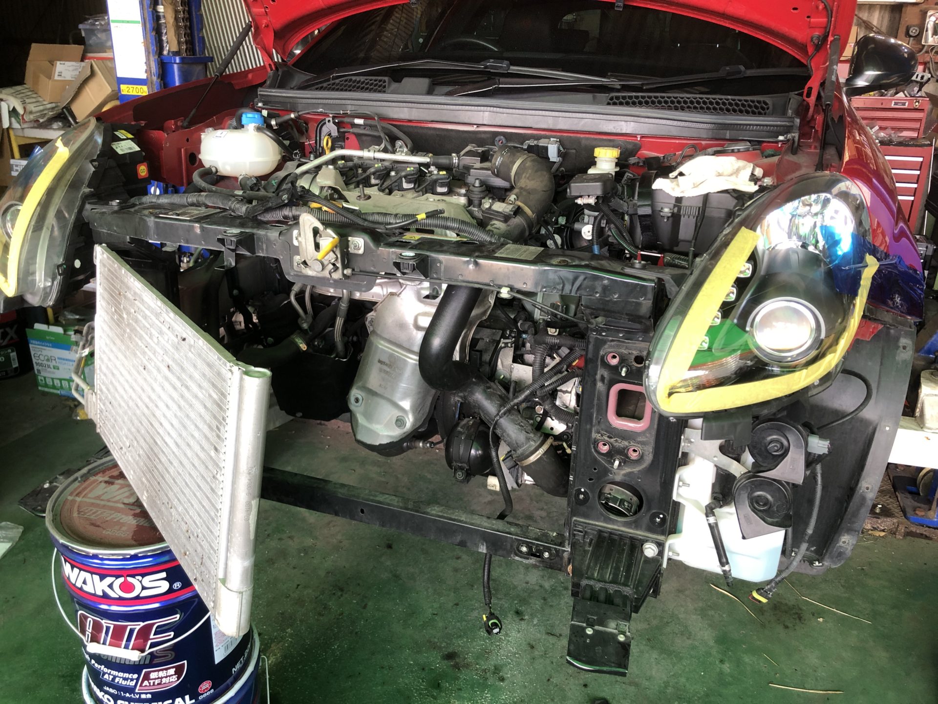 バンパー外して、ここまでやって、やっとラジエーターが取り出せます。