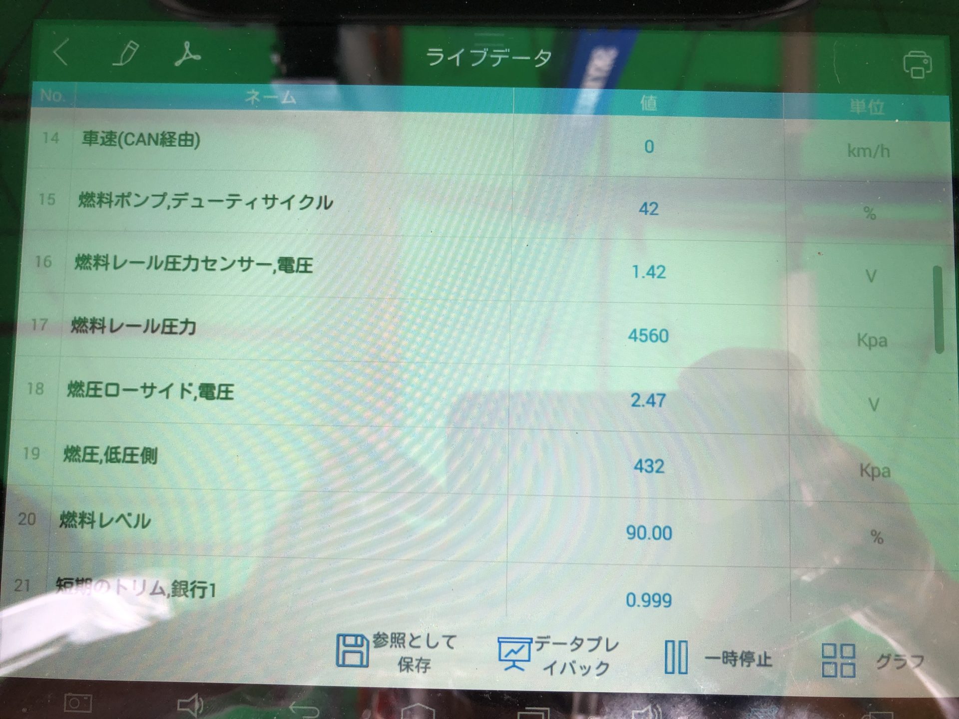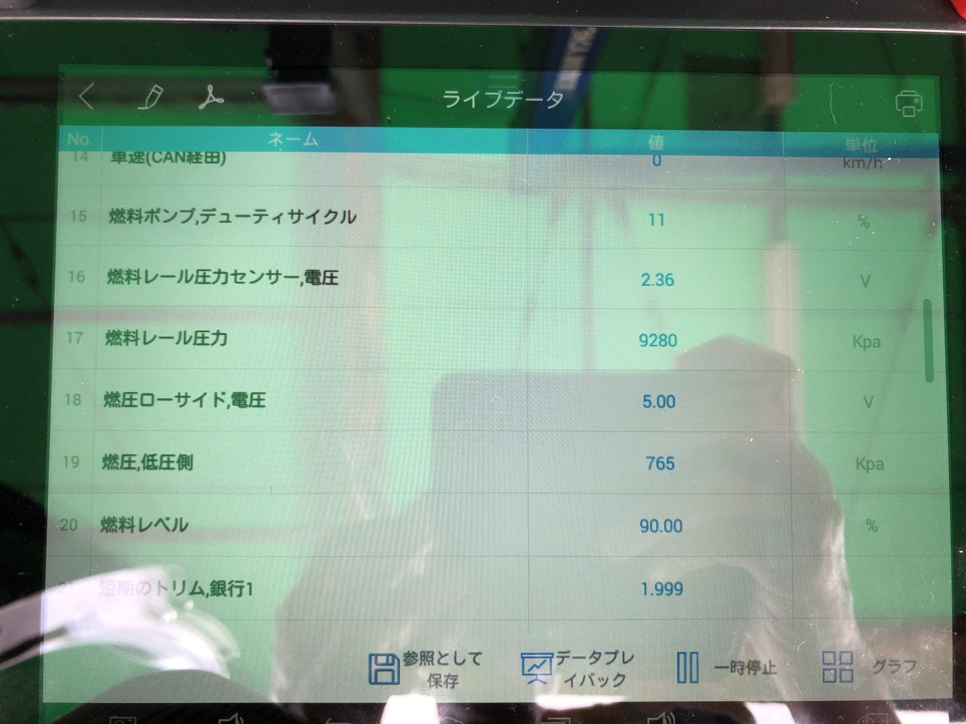 故障コードを消去し、交換後のライブデータを確認。