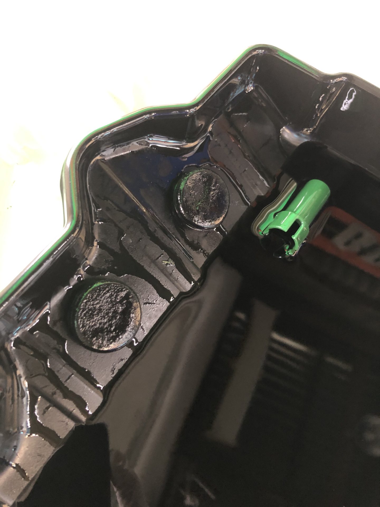 オイルパンのマグネットにもびっしりの鉄粉!