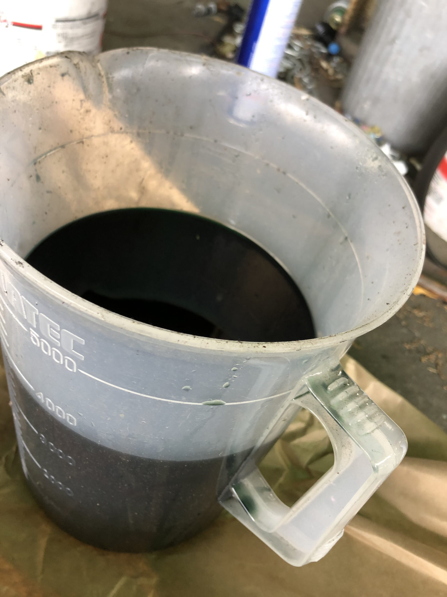 ATFを抜きました。4Lくらい。まあそれなりに汚れています。