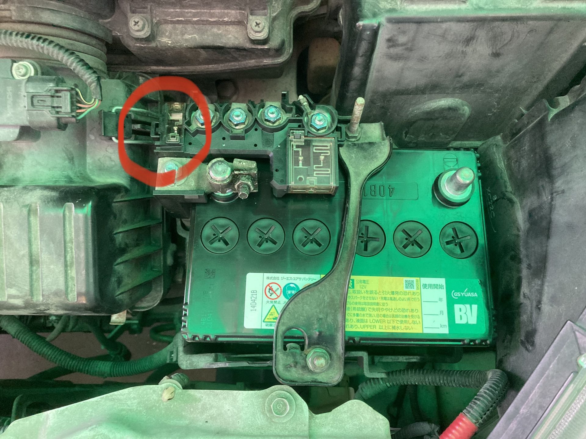 で、バッテリーの上にあるメインヒューズを確認すると、切れてる…