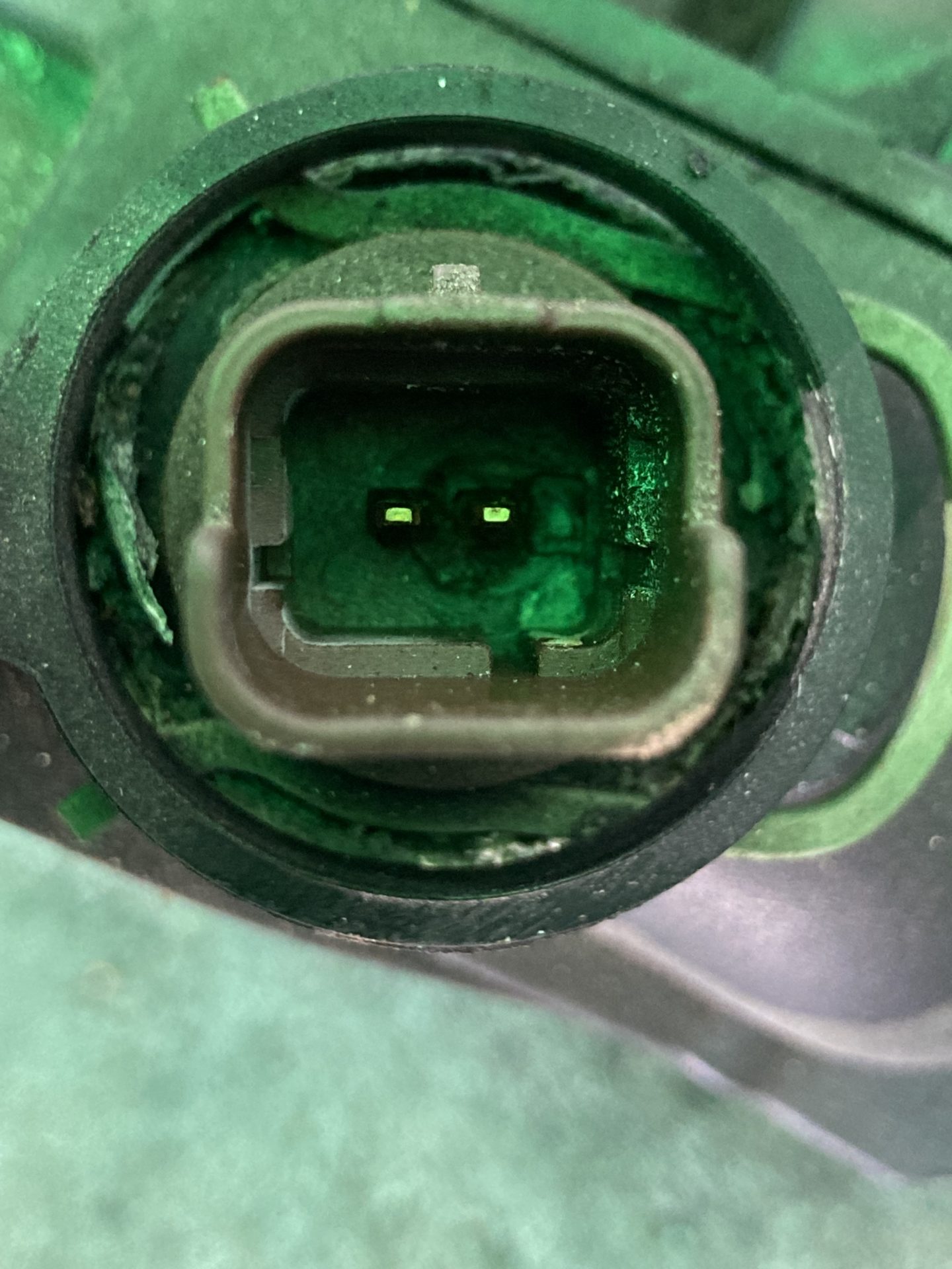 古い方の水温センサーを見ると、おやおや何か溶けてる感じが…