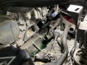 交換後、冷却水を入れてエア抜き中に、電動ファンが回り始めます。